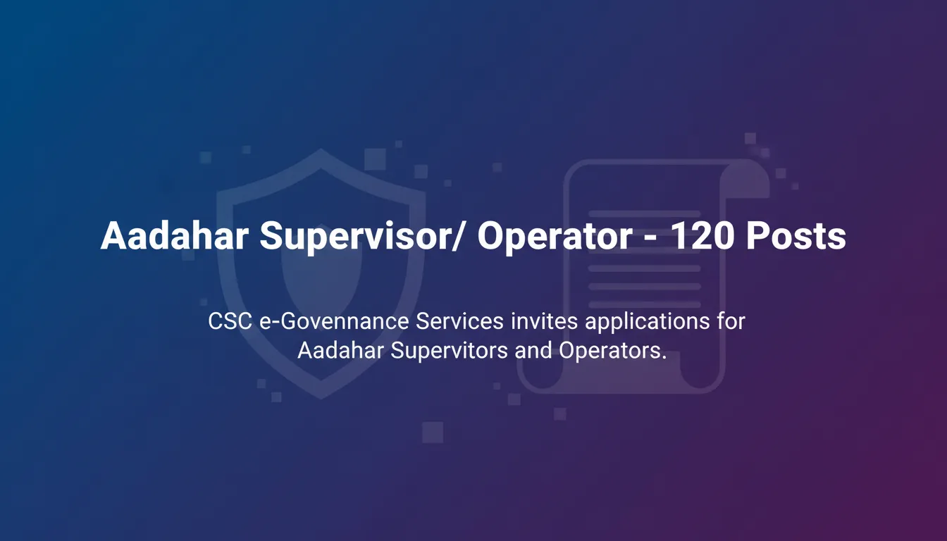 CSC e-Governance Services has announced a recruitment drive to fill 120 positions for Aadhaar Supervisors and Operators. Interested candidates are invited to apply, provided they meet the eligibility criteria set by the organization. Details regarding the application deadline and the examination date will be announced soon.