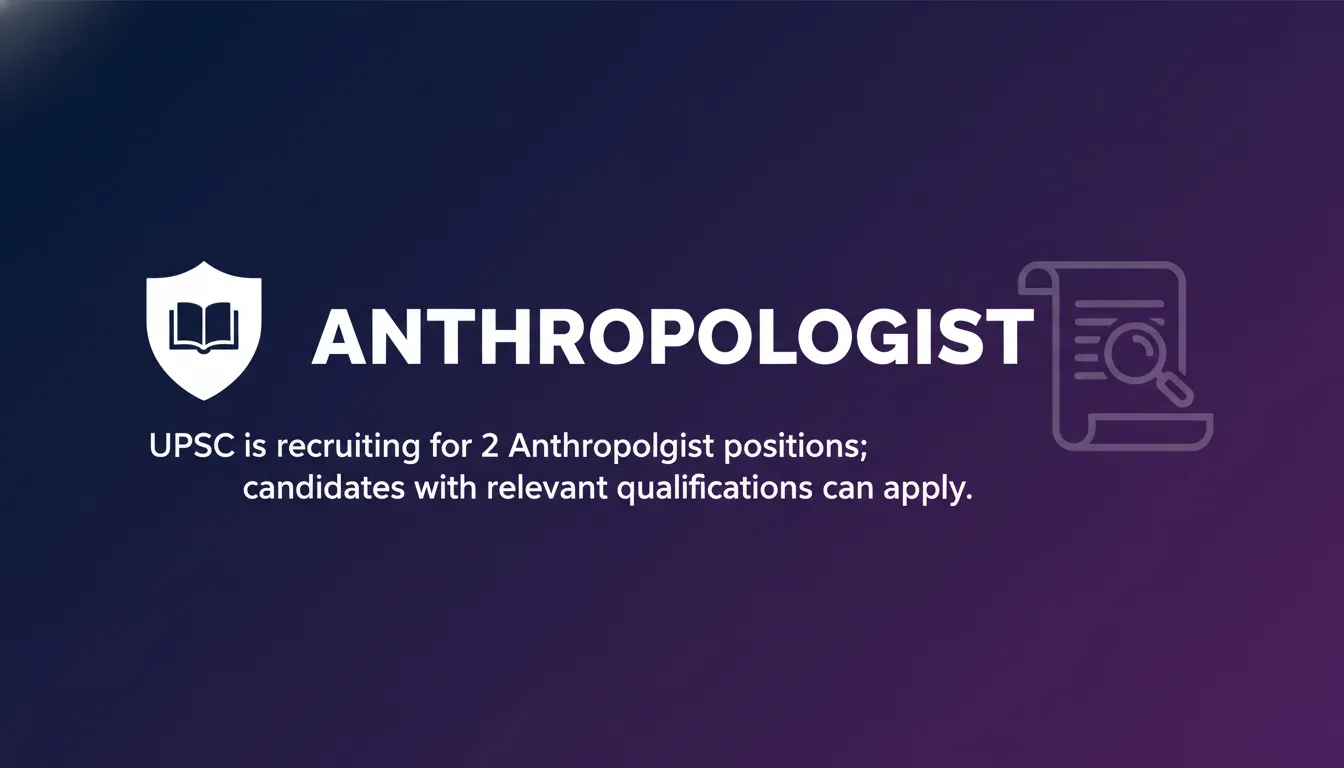 UPSC is recruiting for 2 Anthropologist positions; candidates with relevant qualifications can apply.