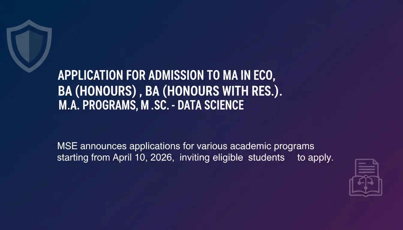 Job notification image for the Application for admission to MA in Eco, BA (Honours), BA (Honours with Res.), M.A. Programs, M.Sc. -Data Science recruitment update.
