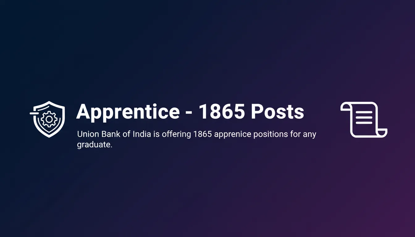 Union Bank of India has announced the recruitment of 1865 apprentices across various branches. This opportunity is open to graduates, offering them a chance to gain practical experience in the banking sector.