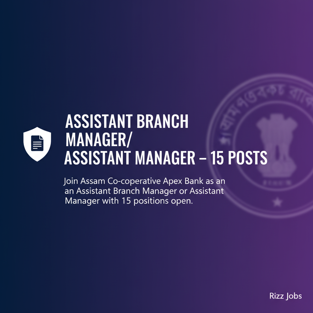 Join Assam Co-operative Apex Bank as an Assistant Branch Manager or Assistant Manager with 15 positions open.