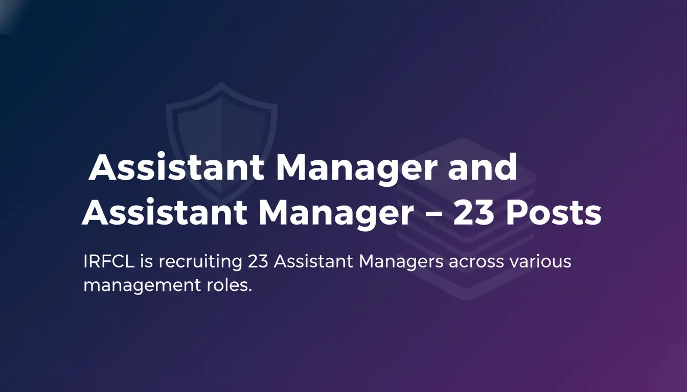 IRFCL is recruiting 23 Assistant Managers across various management roles.
