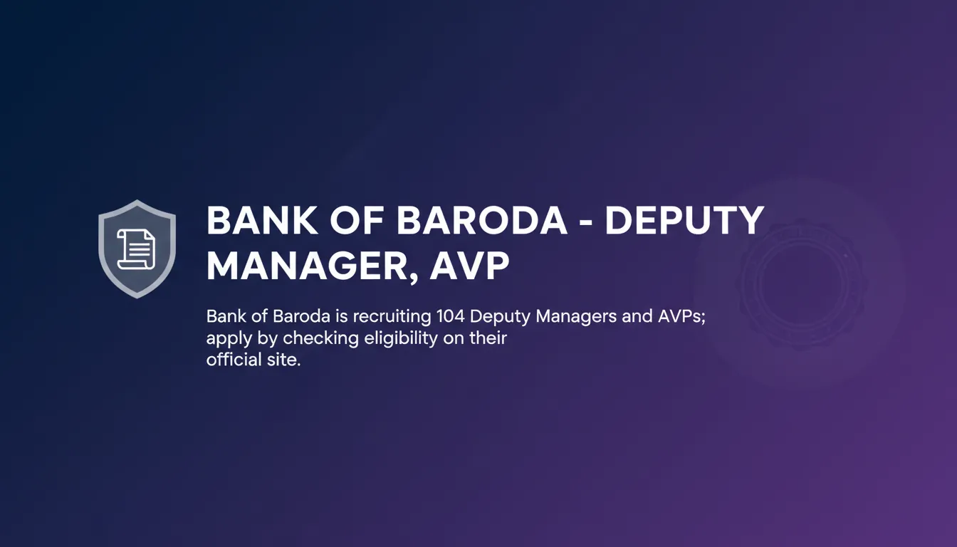 Bank of Baroda is recruiting 104 Deputy Managers and AVPs; apply by checking eligibility on their official site.