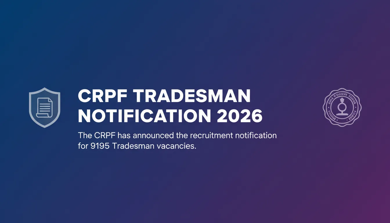 The CRPF has announced the recruitment notification for 9195 Tradesman vacancies.