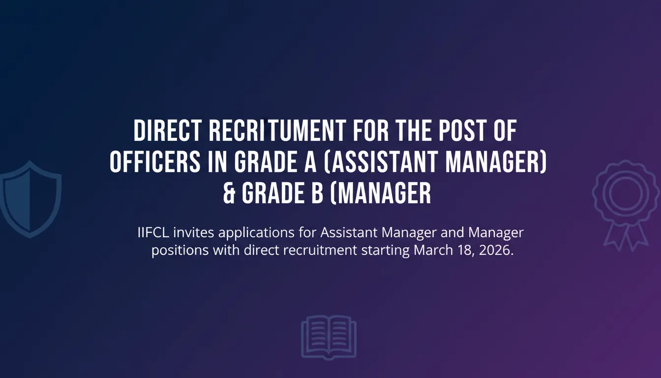 The India Infrastructure Finance Company Limited (IIFCL) has announced recruitment for the posts of Officers in Grade A and B. Eligible candidates can apply for Assistant Manager and Manager roles, beginning March 18, 2026. The recruitment process will include a written examination followed by an interview.