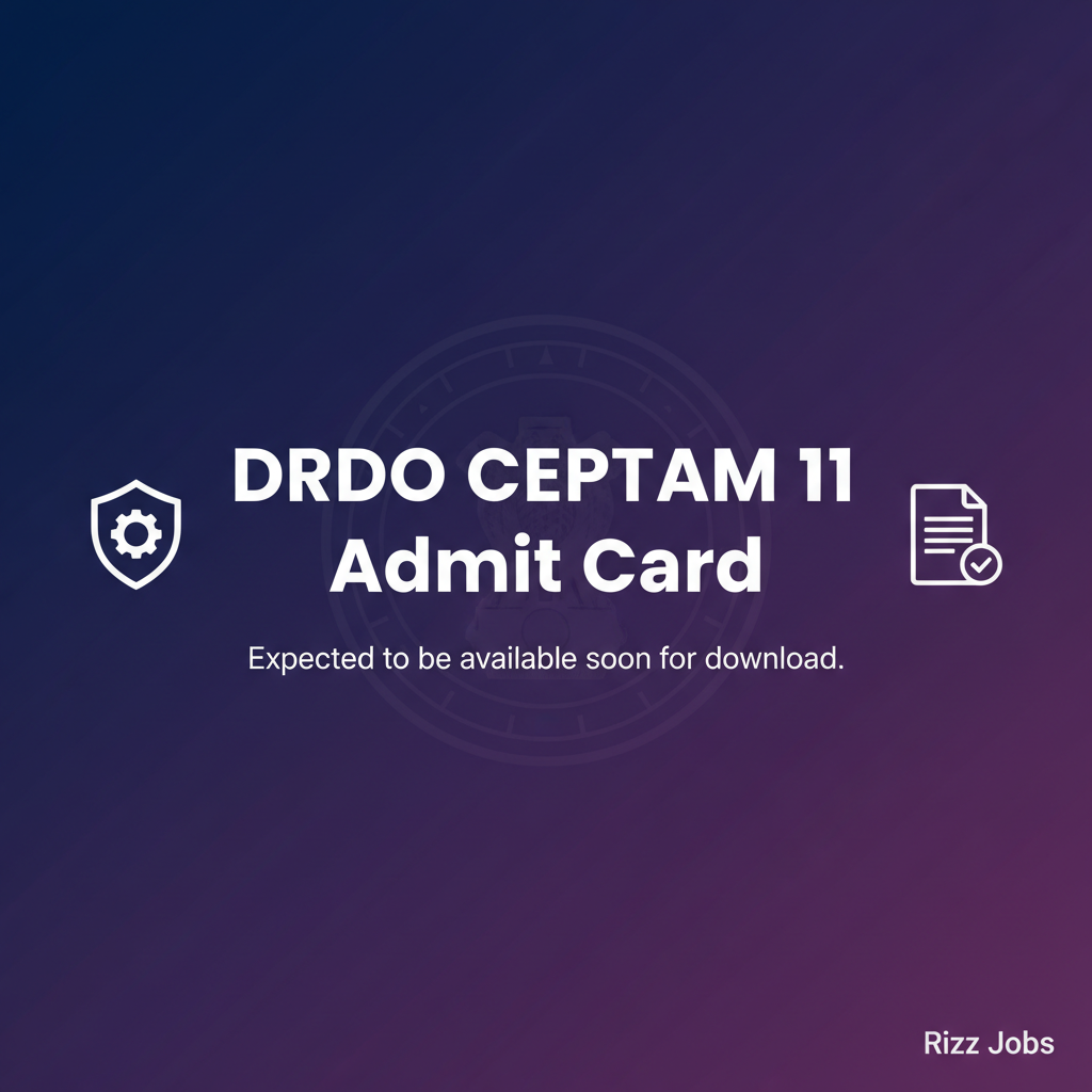 Professional job notification image for the DRDO CEPTAM 11 Admit Card recruitment update.