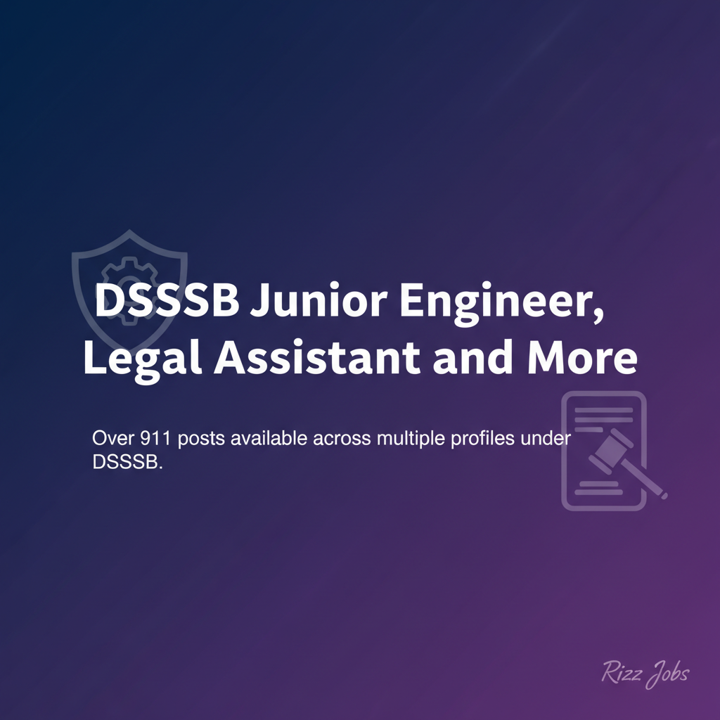 The Delhi Subordinate Services Selection Board (DSSSB) has announced over 911 vacancies for Junior Engineer, Legal Assistant, and other positions. Aspiring candidates can apply for these diverse roles spanning multiple profiles. The recruitment process will follow stringent evaluation methods ensuring the selection of proficient candidates.