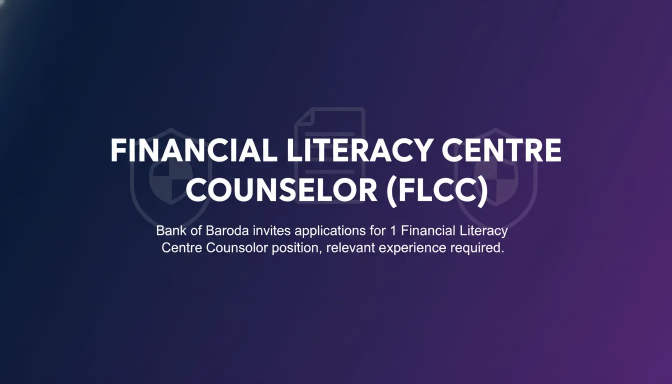 Bank of Baroda invites applications for 1 Financial Literacy Centre Counselor position, relevant experience required.