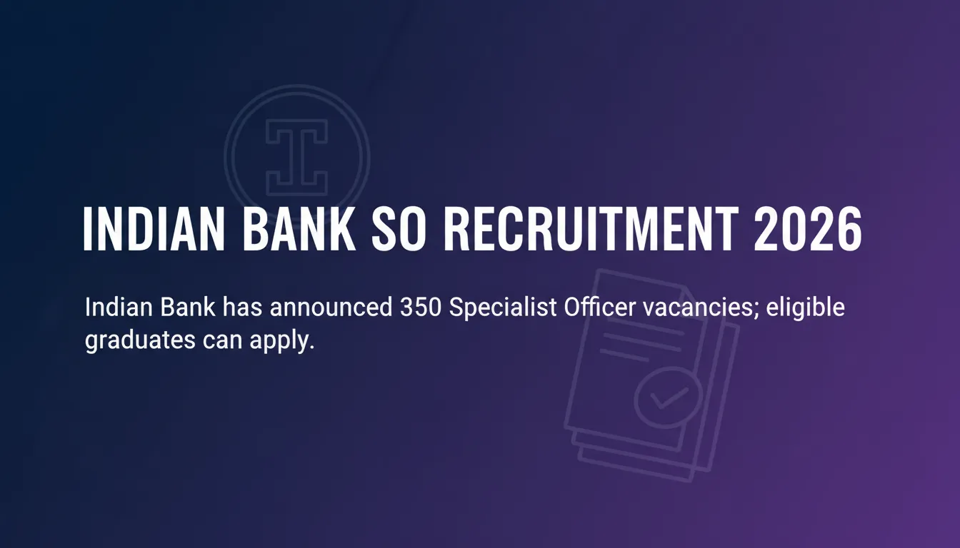 Indian Bank has announced 350 Specialist Officer vacancies; eligible graduates can apply.