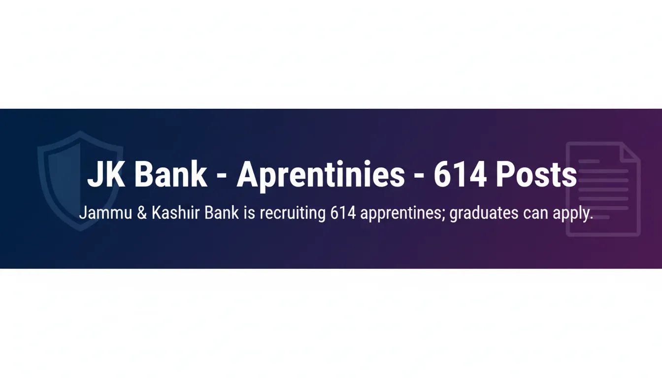 Jammu & Kashmir Bank is recruiting 614 apprentices; graduates can apply.