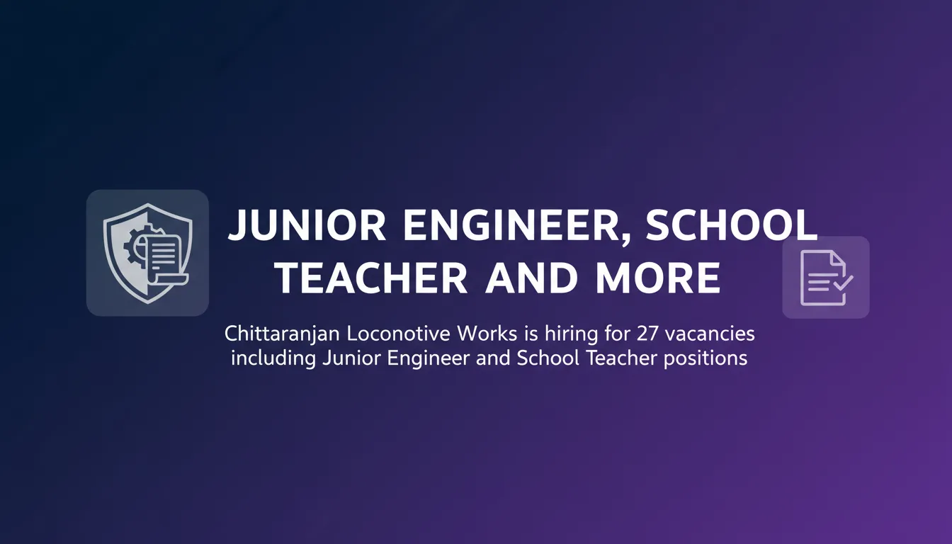 Chittaranjan Locomotive Works is hiring for 27 vacancies including Junior Engineer and School Teacher positions.