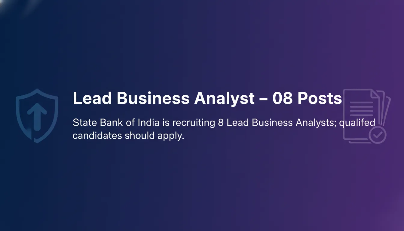 State Bank of India is recruiting 8 Lead Business Analysts; qualified candidates should apply.