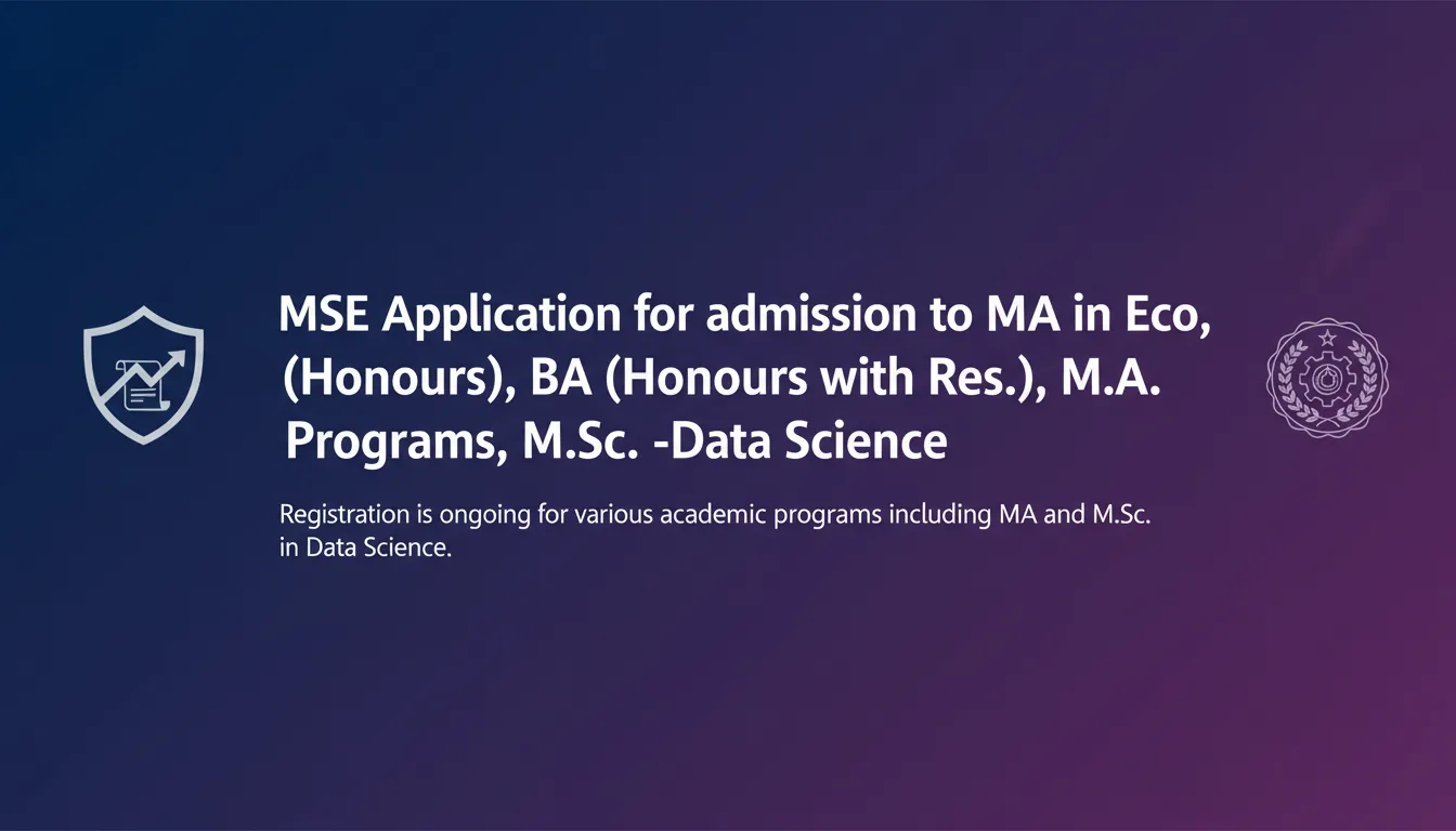 Job notification image for the MSE Application for admission to MA in Eco, BA (Honours), BA (Honours with Res.), M.A. Programs, M.Sc. -Data Science recruitment update.