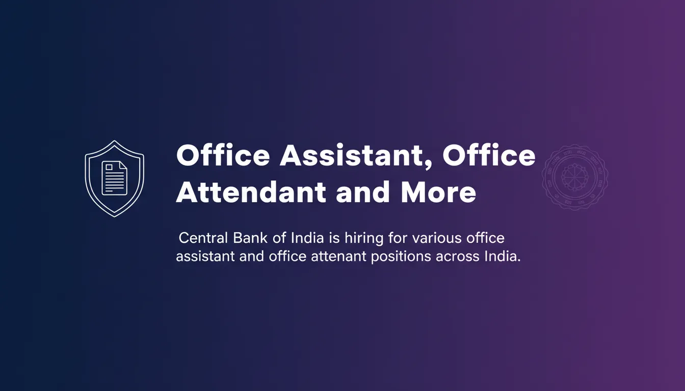 The Central Bank of India has released a notification for the recruitment of office assistants, office attendants, and other positions. This recruitment aims to fill multiple vacancies in branches across the country, focusing on supporting tasks which assist in the smooth functioning of the bank.