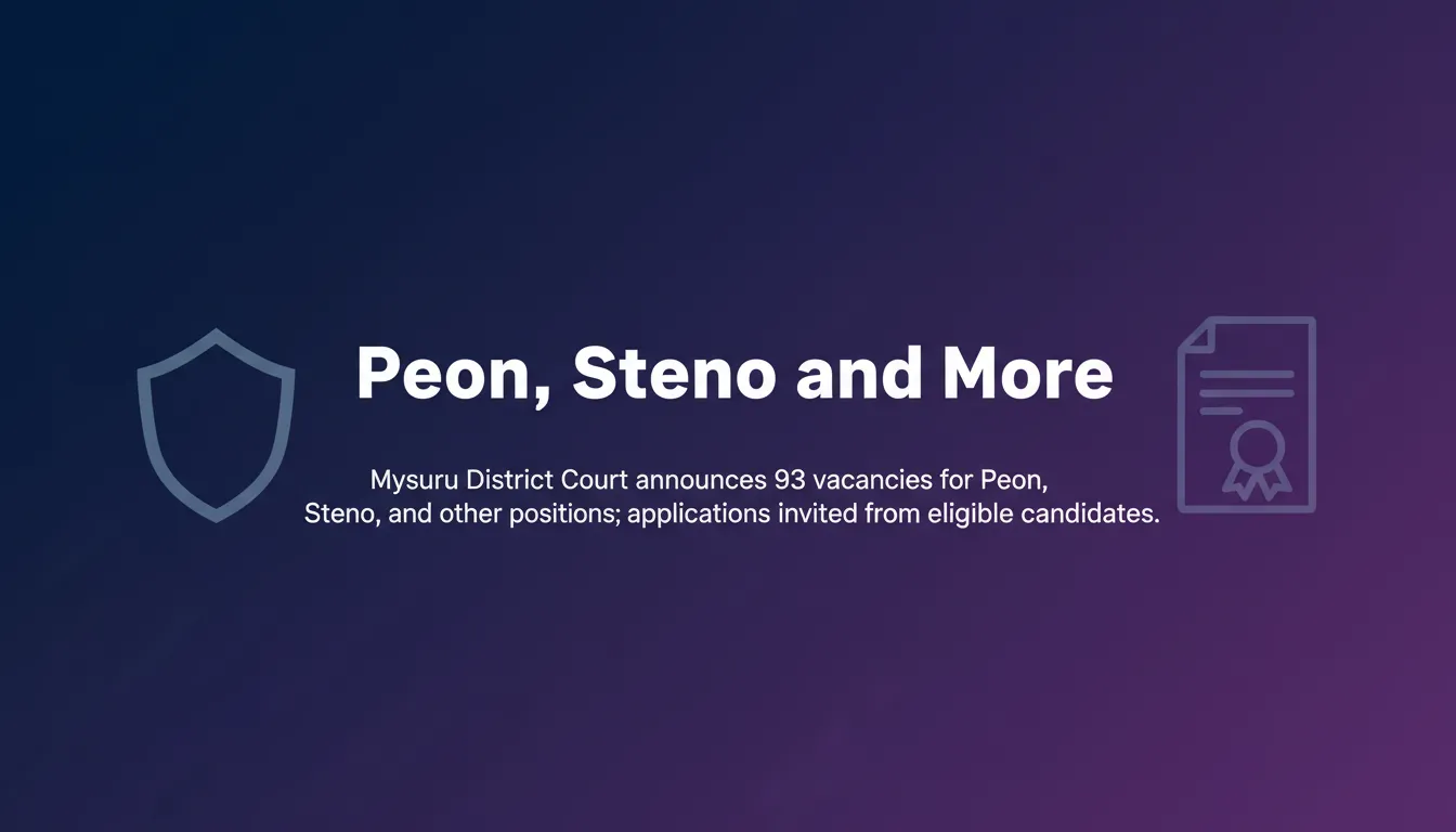 Mysuru District Court announces 93 vacancies for Peon, Steno, and other positions; applications invited from eligible candidates.