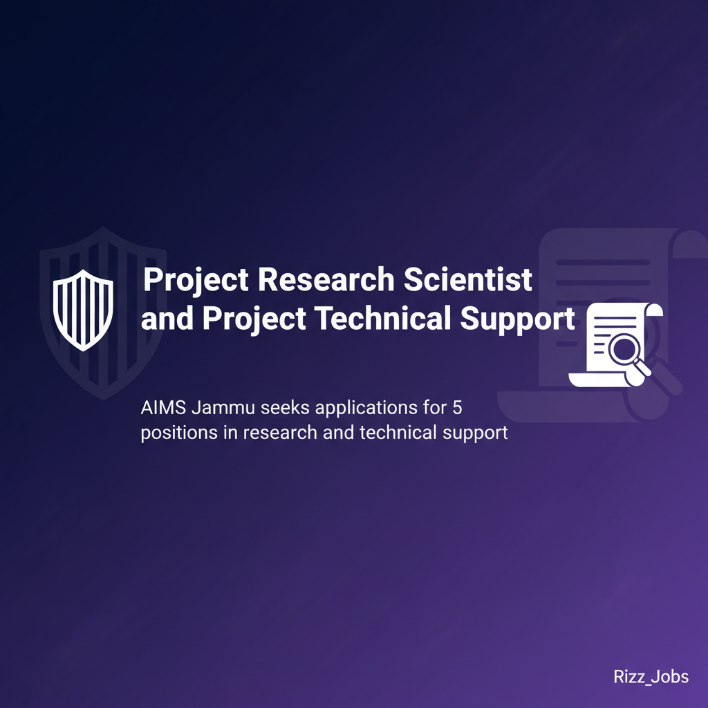AIIMS Jammu seeks applications for 5 positions in research and technical support.