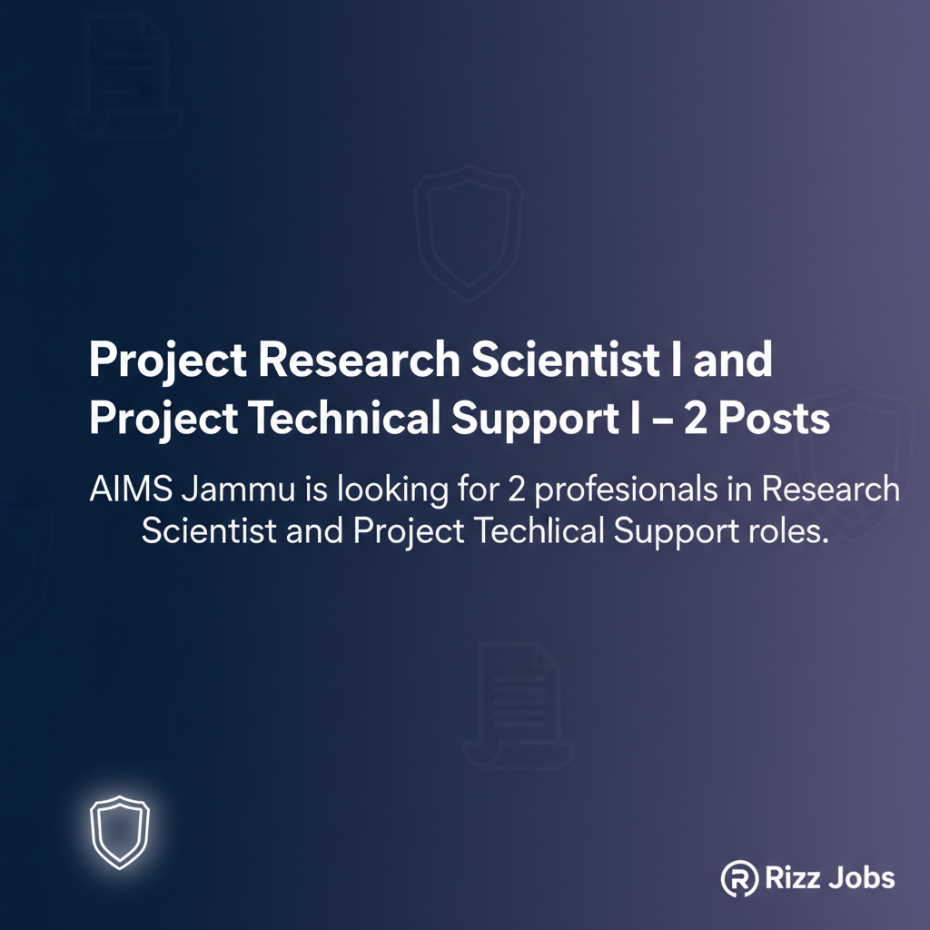 AIIMS Jammu has opened applications for two positions in research roles. The institute is seeking qualified candidates for the posts of Project Research Scientist I and Project Technical Support I. Interested individuals are encouraged to check the official notification for application procedures and eligibility criteria.