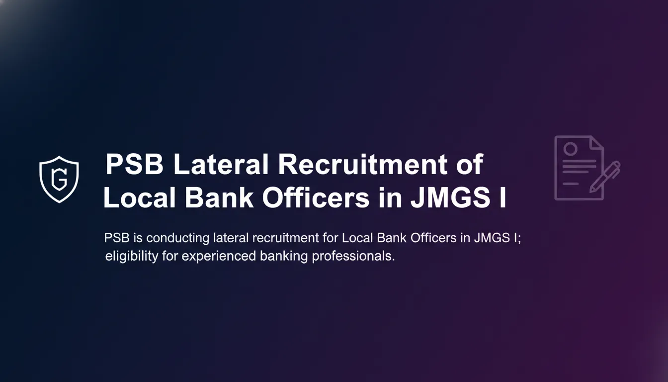 PSB is conducting lateral recruitment for Local Bank Officers in JMGS I; eligibility for experienced banking professionals.