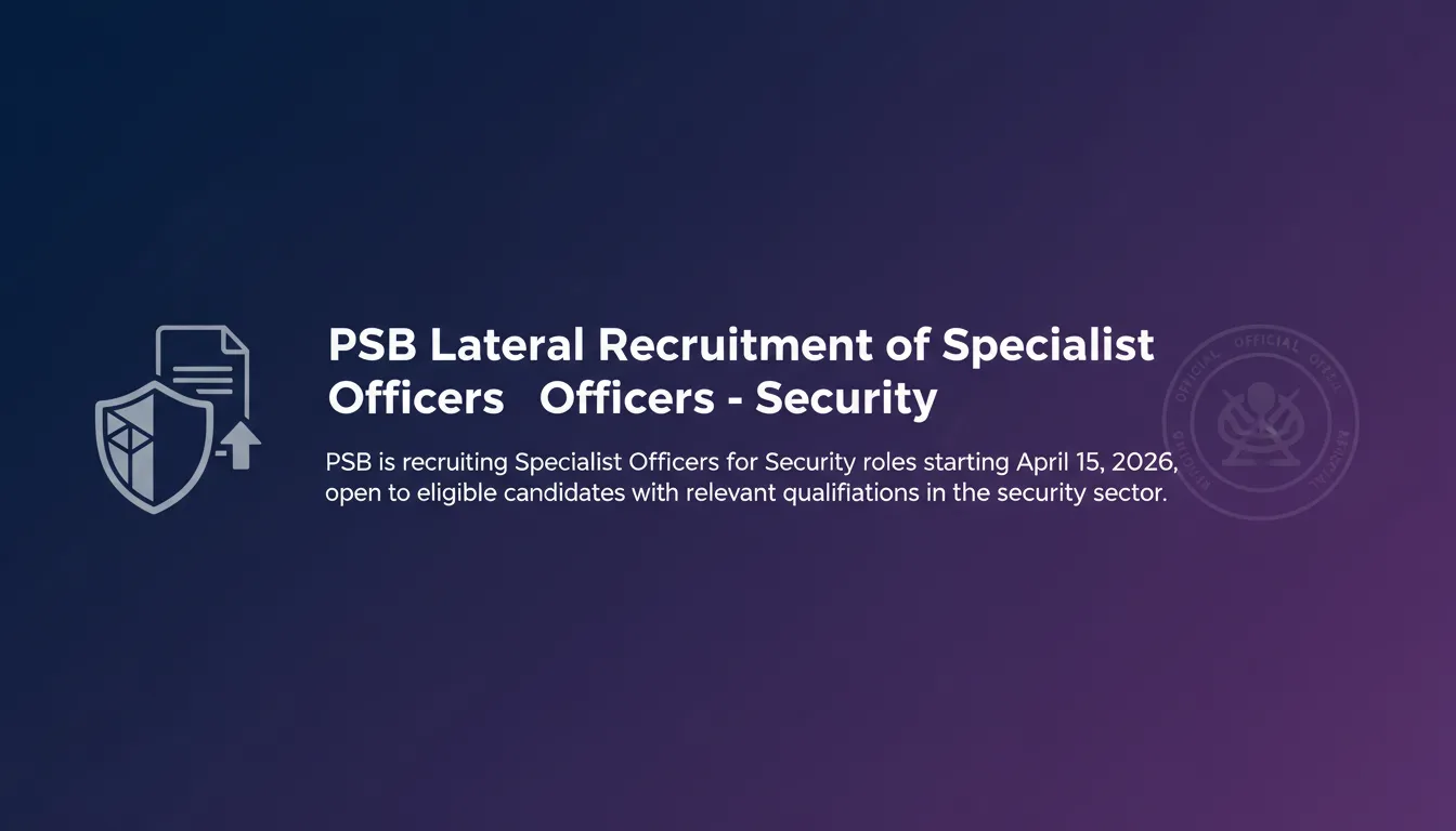 PSB is recruiting Specialist Officers for Security roles starting April 15, 2026, open to eligible candidates with relevant qualifications in the security sector.