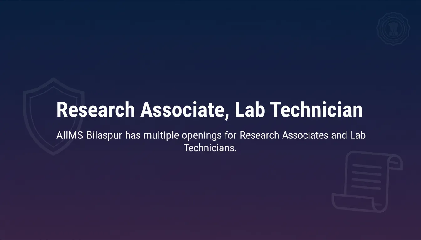 AIIMS Bilaspur has multiple openings for Research Associates and Lab Technicians.