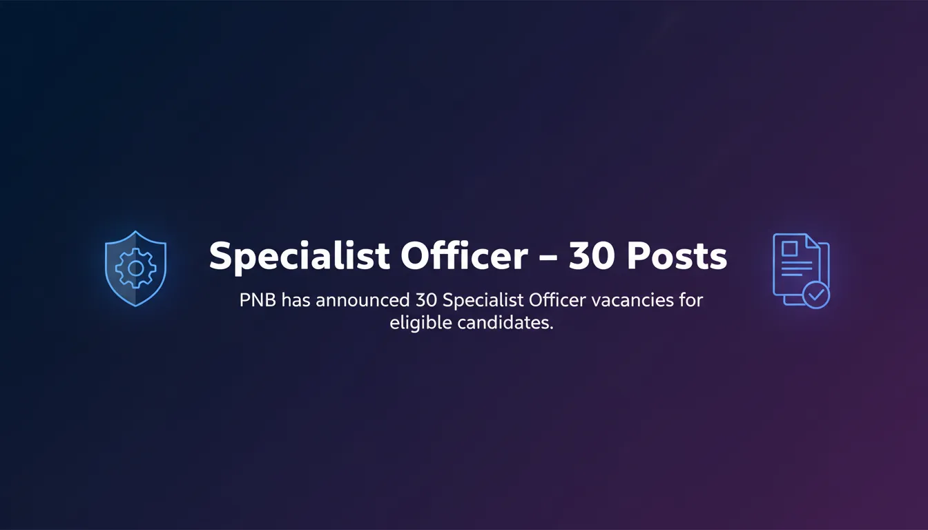 PNB has announced 30 Specialist Officer vacancies for eligible candidates.