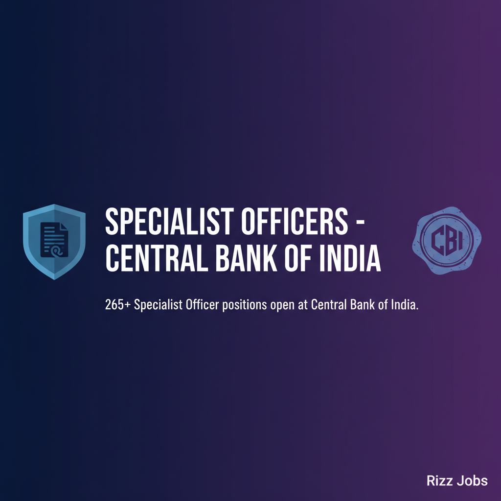 The Central Bank of India has announced vacancies for over 265 Specialist Officer positions. This recruitment drive targets various specializations within the banking sector. Interested candidates should review the eligibility criteria and apply through the official portal.