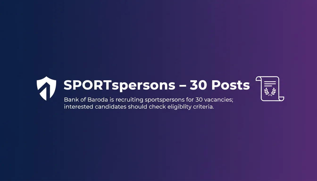 Bank of Baroda is recruiting sportspersons for 30 vacancies; interested candidates should check eligibility criteria.