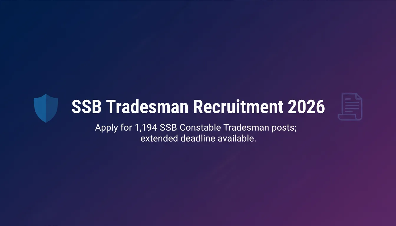 Apply for 1,194 SSB Constable Tradesman posts; extended deadline available.