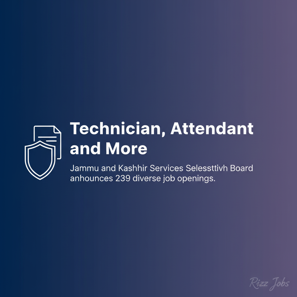 Jammu and Kashmir Services Selection Board (JKSSB) has announced a recruitment drive for the year 2026, offering 239 job openings across various positions such as Technician, Attendant, and more. This employment opportunity is an excellent avenue for job seekers in the region, providing diverse roles and a chance to join government service. Applicants are encouraged to review the eligibility criteria and apply within the stipulated timeframe.
