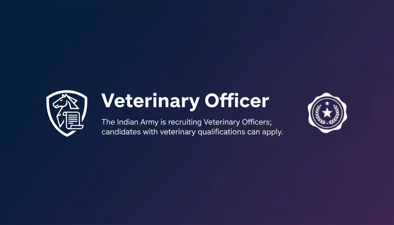 The Indian Army is recruiting Veterinary Officers; candidates with veterinary qualifications can apply.