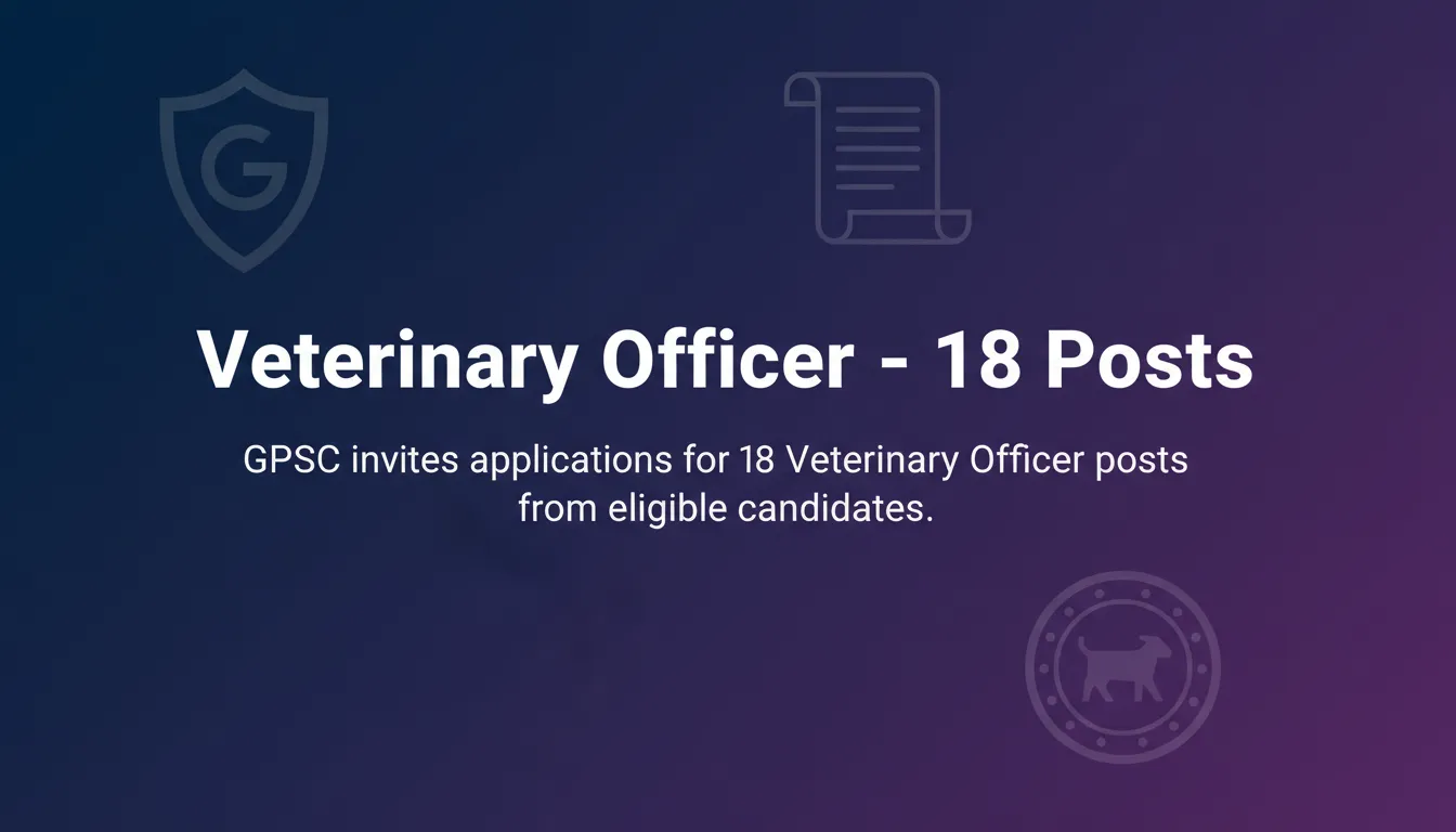 GPSC invites applications for 18 Veterinary Officer posts from eligible candidates.