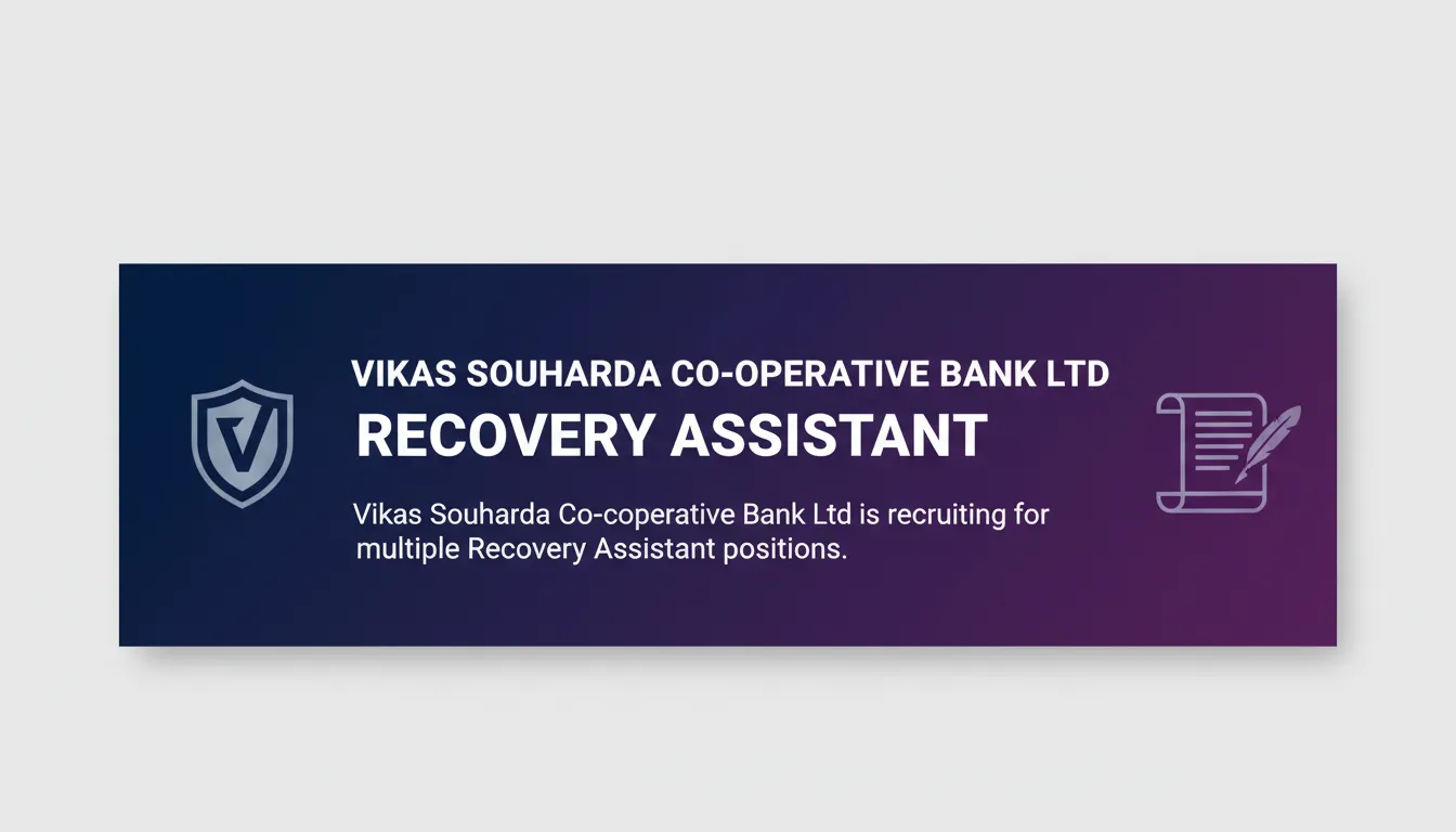Vikas Souharda Co-operative Bank Ltd is recruiting for multiple Recovery Assistant positions.
